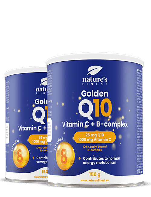 Golden Q10 met de onoverwinnelijke kracht van co-enzym Q10, vitamine C en B-vitaminen helpt beschadiging en veroudering van de huid tegen te gaan.