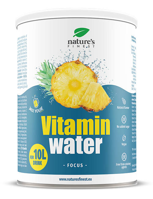 Vitamine Water FOCUS is een verfrissende drank met ananassmaak die de dagelijkse behoefte aan 10 vitaminen en mineralen, die een normaal energiemetabolisme ondersteunen, aanvult. Magnesium, vitamine B6, B12 en calcium helpen ook vermoeidheid te verminderen.